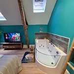 Elles ont une vue sur la cour intérieure. Appartement L'Ile Turquoise- Balneo Privee I Relaxation comprend 1 chambre à coucher à coucher. La pièce comprend 1 salle de bain avec une baignoire. De plus, la salle de bain comprend un sèche-cheveux et des serviettes.